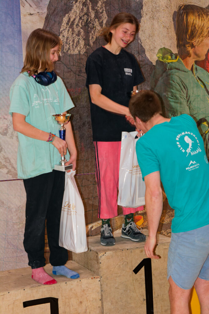 Na podstawie wyników we wspinaniu i dwóch dodatkowych konkurencji (wiek i staż) w każdej grupie wyłoniliśmy zwycięzców i zdobywców 2 i 3 miejsca. Zawodnicy stanęli na podium w 4 kategoriach wiekowych. Dodatkowo startowała też grupa rodziców, których wynik był obliczony wraz z dzieckiem i wyłonił zwycięzców „Rodzinnego Wspinania”. Bardzo fajnie się udała ta konkurencja! Często małe dzieciaki tłumaczyły rodzicom jak mają się wspinać i rzadko kiedy rodzic był lepszy od dziecka. W poniższych tabelkach podajemy wyniki. W kolumnie drugiej wyróżniliśmy najlepszych wspinaczy nie biorąc pod uwagę stażu wspinaczkowego i wieku.